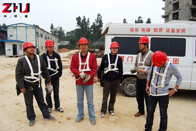 公司安全质量管理部在晋江宝龙城市广场整装待发,准备对塔机进行定期维护、保养检查