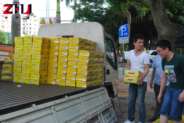 我司工会主席王天福代表公司致谢,并将防暑降温饮料及时发放到各施工工地。