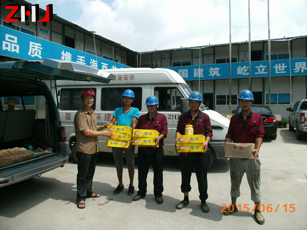 自2015年5月下旬到6月中旬,我司工会组织5个慰问小组,分别深入厦门、漳州、泉州、龙岩等地。亲监施工现场,慰问生产一线员工,送去防暑降温饮料、配送防暑药品。